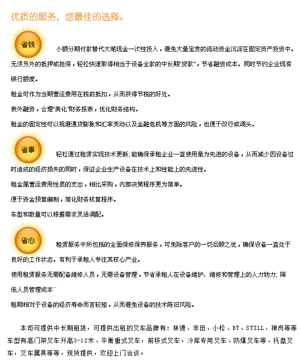 新到一批高门架叉车优惠出租出售,欢迎上门选购。专业提供叉车租赁、叉车出售、防爆叉车、叉车属具、叉车维修、叉车配件等全面服务。欢迎咨询13922131764宋经理。